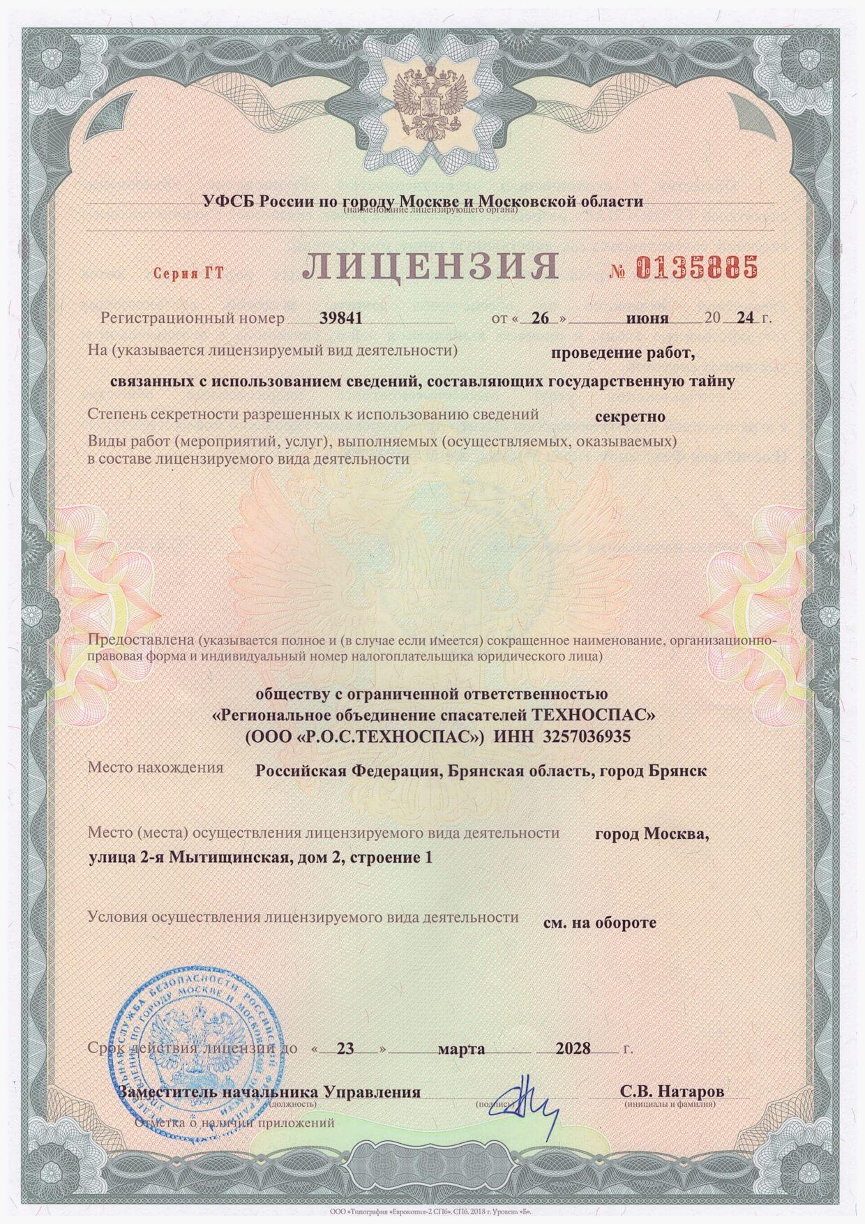 Лицензия на проведение работ, связанных с использованием сведений, составляющих государственную тайну