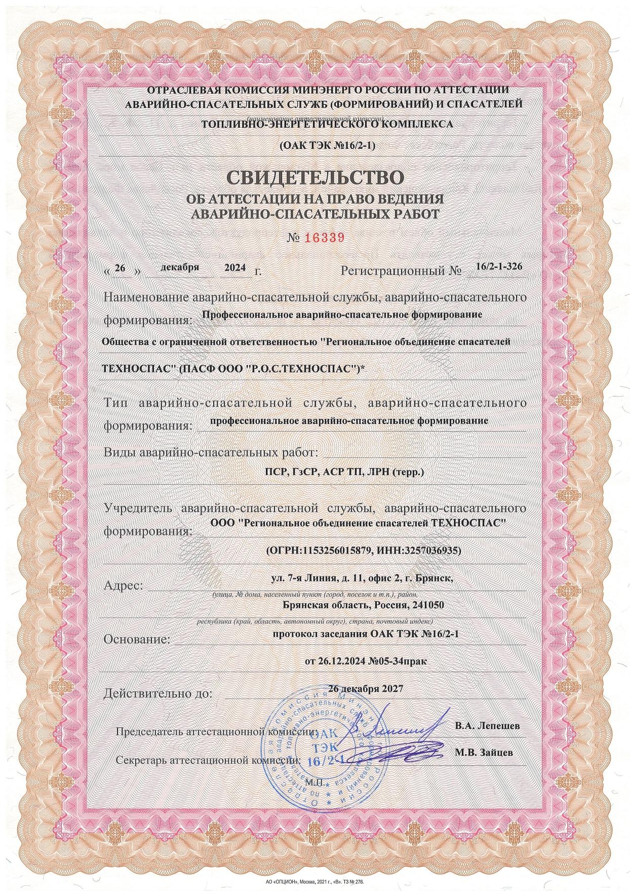 Свидетельство об аттестации на право ведения аварийно-спасательных работ